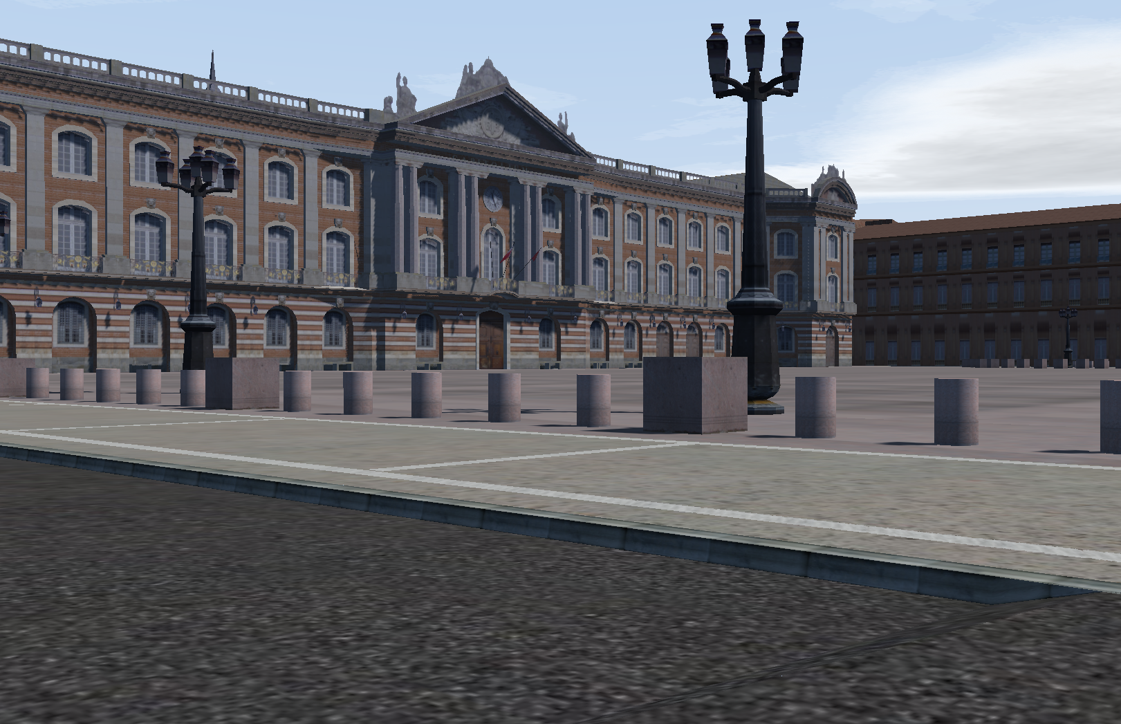 This geospecific database represents the dense urban zone of Toulouse downtown. It includes high density buildings, traffic lights, detailed texture, network of roads